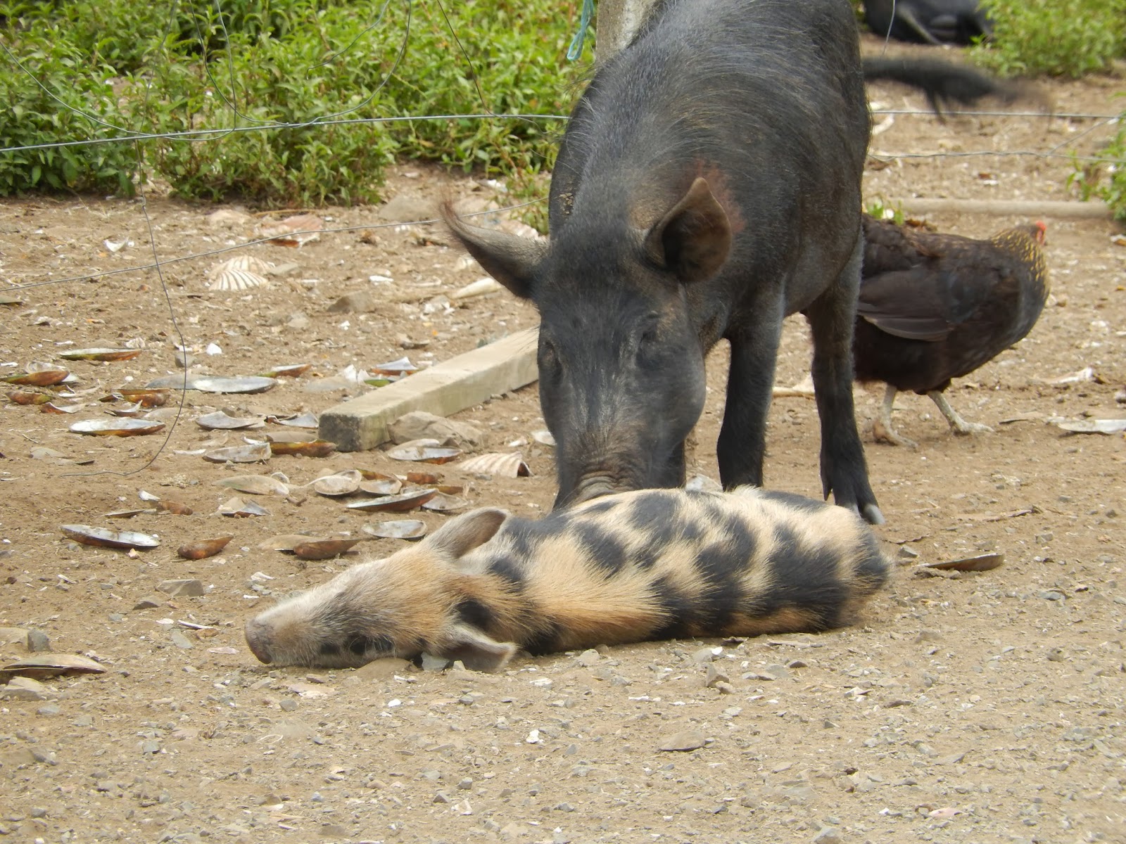 Our plan was to visit the wild pigs and the pig man, see the siamese kauri tree, and visit the waterfall. We really wanted to see the wild pigs because Lasma (Latvia), our fellow WWOOFer here at the cafe who left a few weeks back, did the same and seemed to really enjoy it. She also got a ride from Stu, the pig man, while she was out there so we were hoping to get one as well. It took us a bit of effort to get out there. We got a ride into town and a ride to the 309 road without trouble. Once on the 309 road the first car picked us up - a couple visiting from Prague. The problem, however, was that we didn't know exactly where the pigs were. We knew the pigs were before a place called Waterworks but on our ride we didn't see any pigs. When we got to Waterworks, without any luck of finding the pigs, we had them drop us off and decided we'd walk back the road to find the pigs as we didn't want to take up too much of these nice people's time. We went into the Waterworks to ask the people working where exactly the pig man lived. The woman who was working behind the desk was a bit stunned to find out we'd hitchhiked out to see a man who lives with pigs but gave us some information anyways. She obviously couldn't understand why we'd rather hang out with a man who lives with wild pigs instead of go to a water attraction but we didn't care. We took her directions and started our hike back. We got there in about 15 minutes and boy was it cool! Below are some photos. (Side note: if I ever see two girls walking down a dirt road in the middle of nowhere I will no longer find it weird. This is exactly what we were doing and to us it was totally normal.)